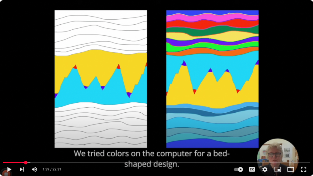 A quilting adventure. Ann describes making a quilt for her grandson, showing their steps in the design decisions, as well as details of using water soluble resist, painting with thickened dyes, washing the fabrics, assembly, quilting and photographing.