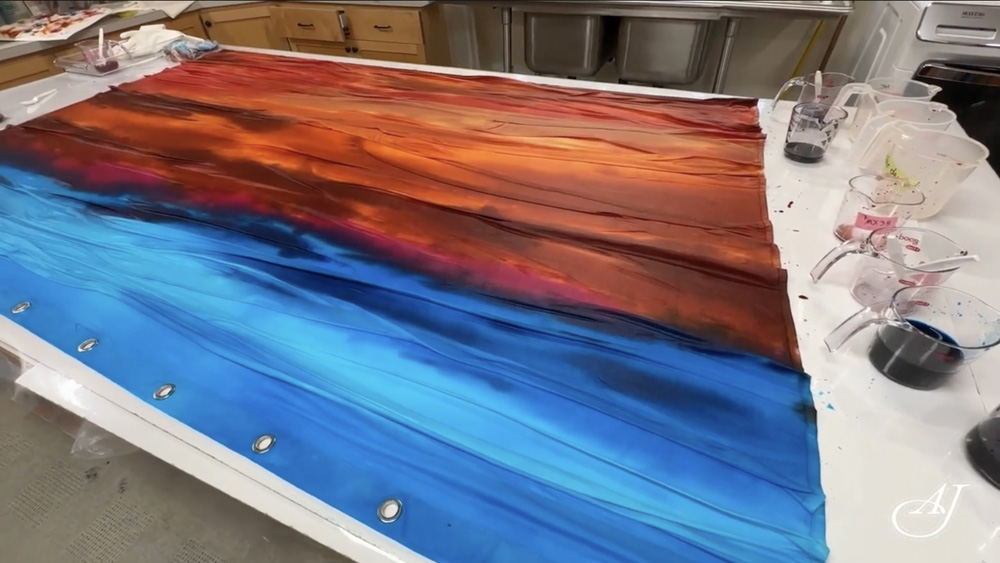 Image from video of blending on the fabric.