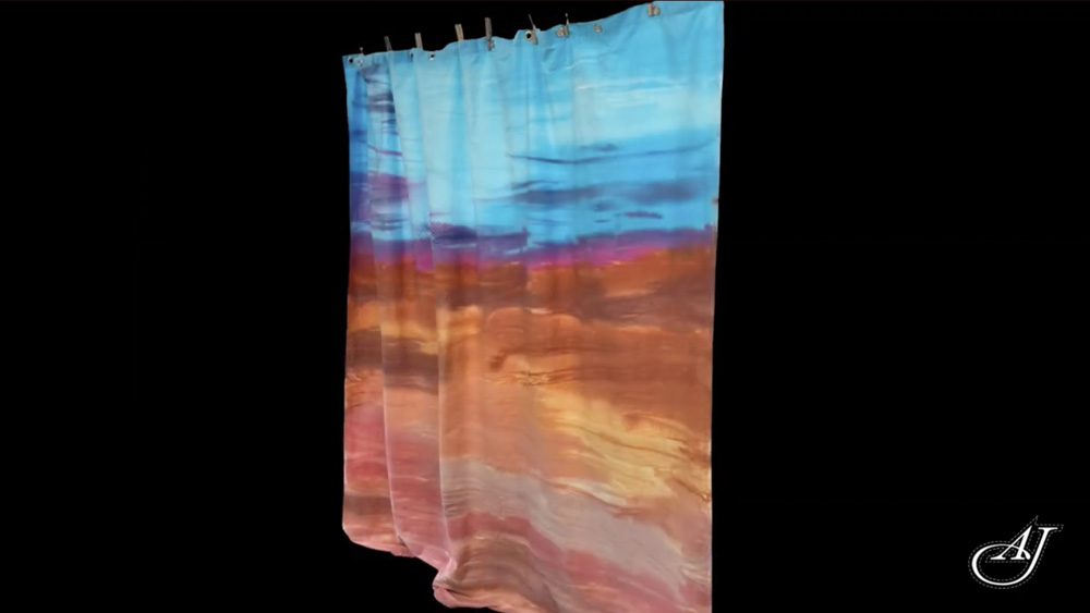Image from video of cotton shower curtain on the table.