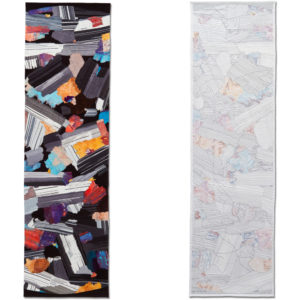 Cotton sateen and silk organza, low-water immersion dyed, hand painted and printed with dye, hand and machine stitched